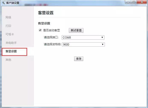 pc端客显设置:设置端口和波特率